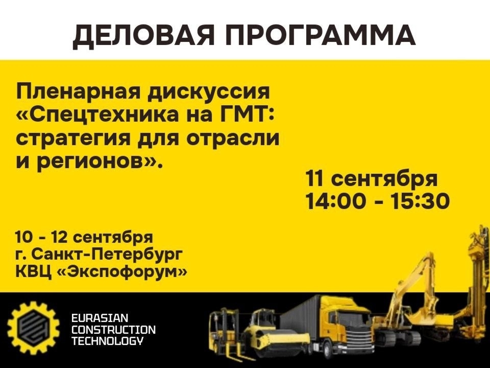 11 сентября состоится пленарная дискуссия «Спецтехника на ГМТ: стратегия для отрасли и регионов». В фокусе сессии — синхронизация отраслевых и региональных стратегий, логистика и доставка топлива потребителю, нормативная база, практика безопасной эксплуатации и формирование доверия к новой топливной модели.