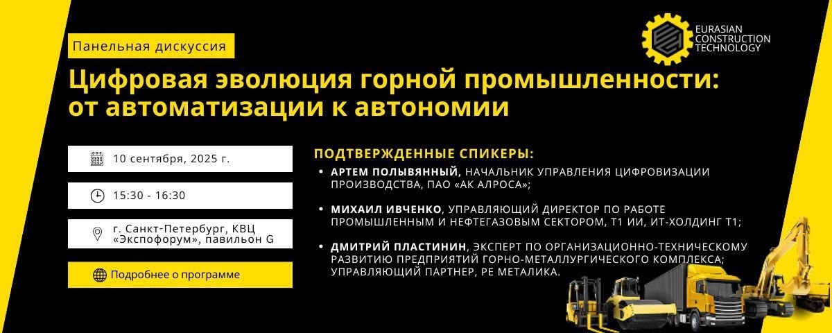 В рамках деловой программы Eurasian Construction Technology 2025 состоится конференция "Цифровая эволюция горной промышленности: от автоматизации к автономии". В фокусе — практические кейсы, технологические горизонты и системный подход к цифровизации горного производства.